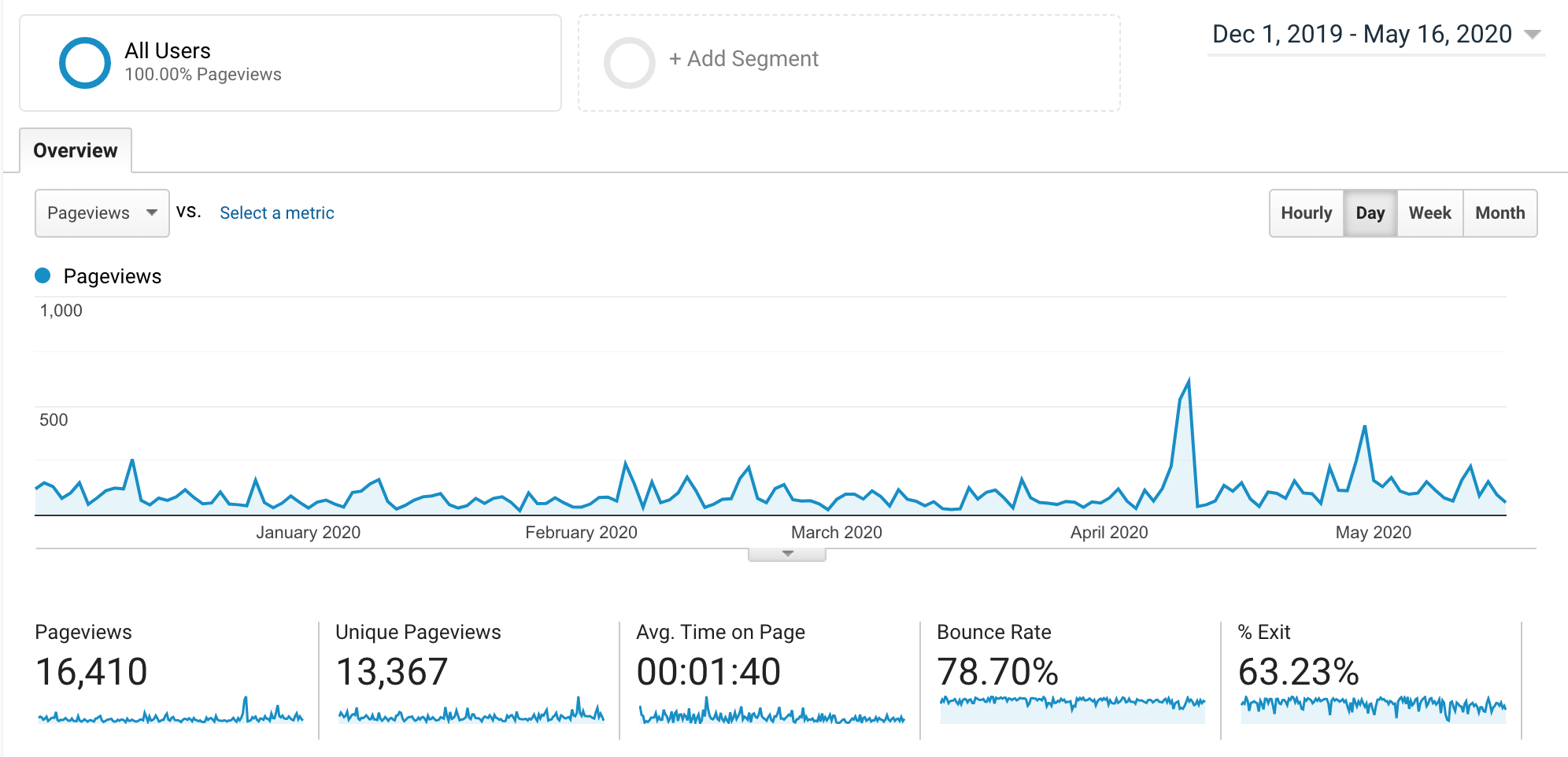 Here’s my recent overall traffic courtesy of Google Analytics: